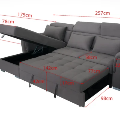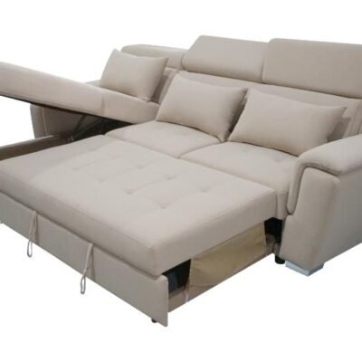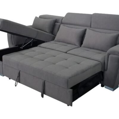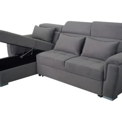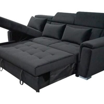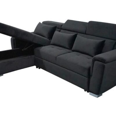 Antonio Velvet Corner Sofa Bed with Storage & USB – Universal Side, Medium Firm, Double Sleeper