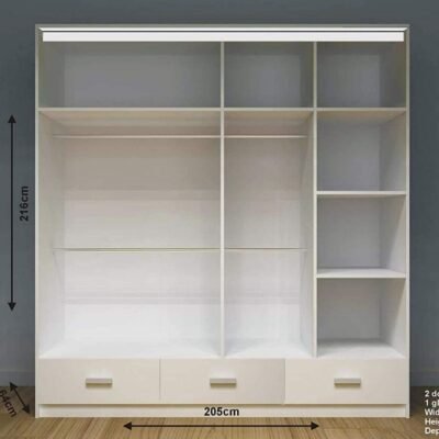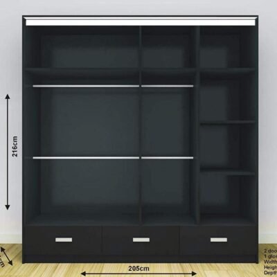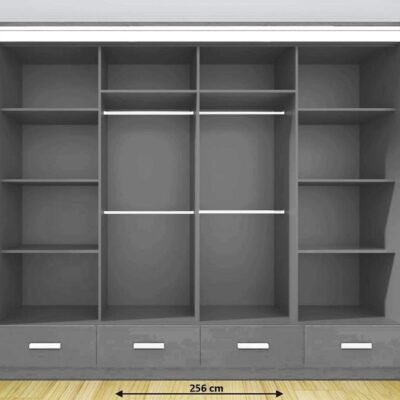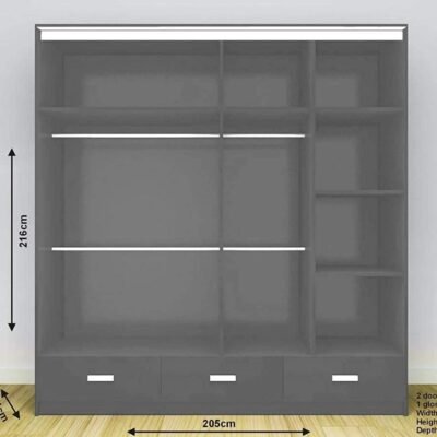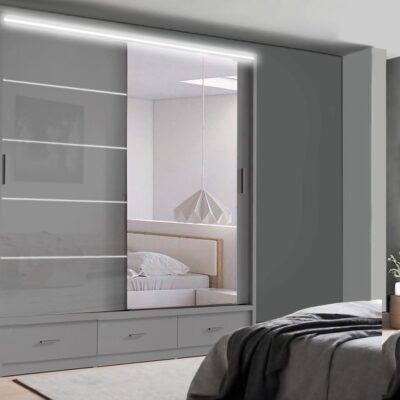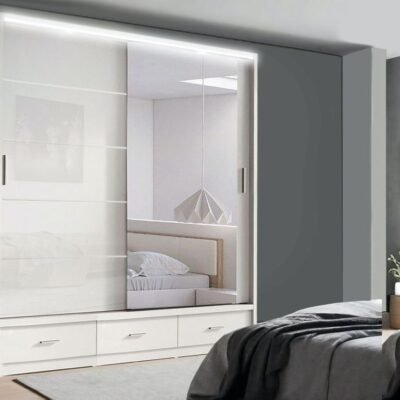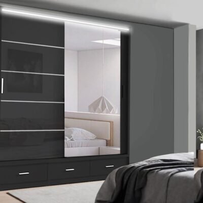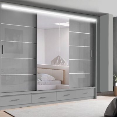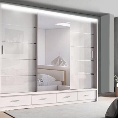 Florence High Gloss Sliding Door Wardrobe with Mirrors – LED Lighting, Drawers, and Smart Storage – 205cm & 256cm Options