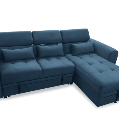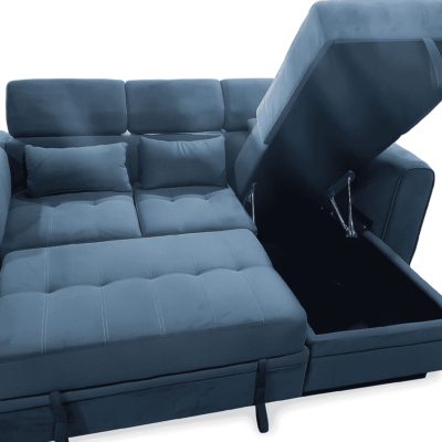 Luca Velvet Corner Sofa Bed with Storage – Universal Side – Pull-Out Double Sleeper with Solid Wood Frame