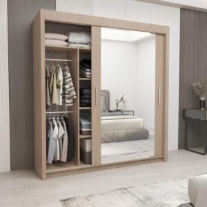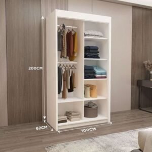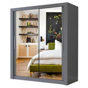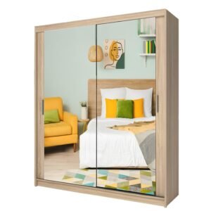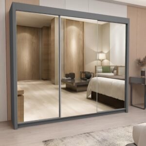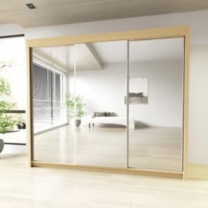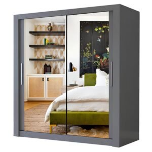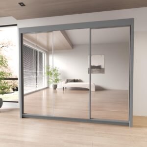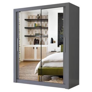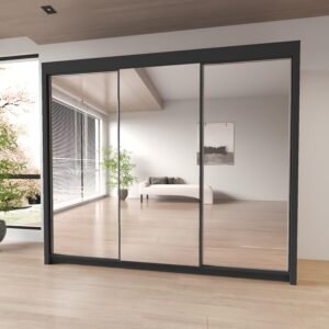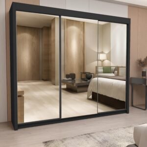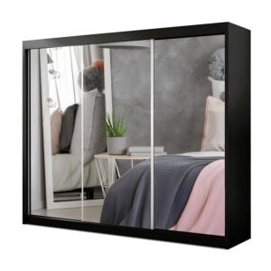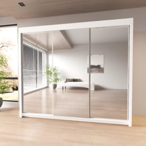 Milan Full Mirror Sliding Door Wardrobe – 2 or 3 Doors – Multiple Sizes & Colours – Shelves, Rails, Drawers