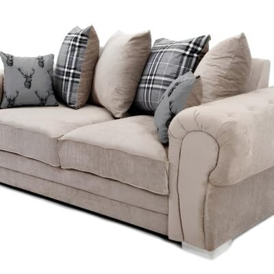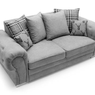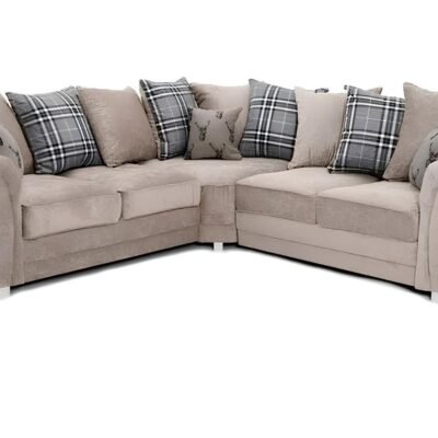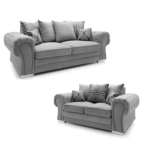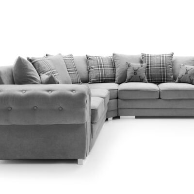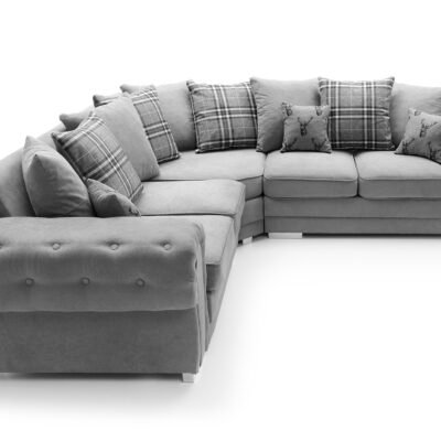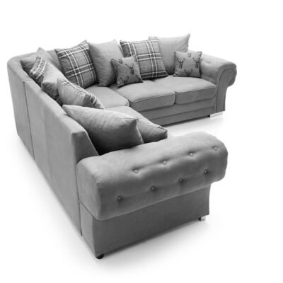 Verona Chenille Corner Sofa – Scroll Arm Tufted Design – 2, 3, or Corner Seater – Chrome Legs